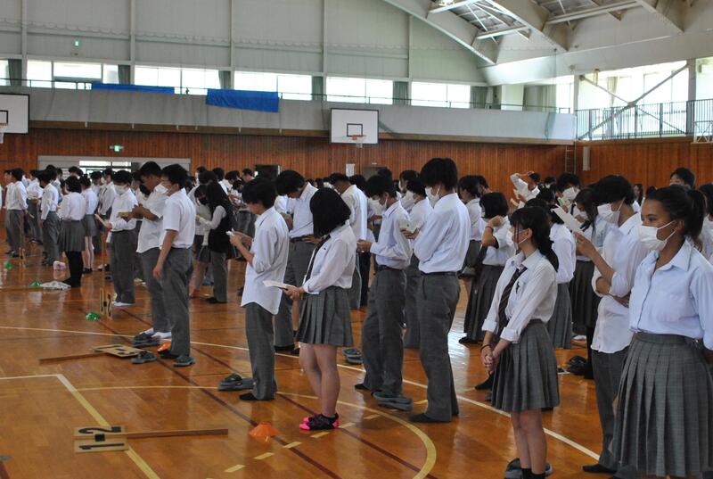 1月末から2月にかけて、1年生の「英語コミュニケーションⅠ」と「体育」の授業で、英語によるルール説明と試合の体験が行われました。