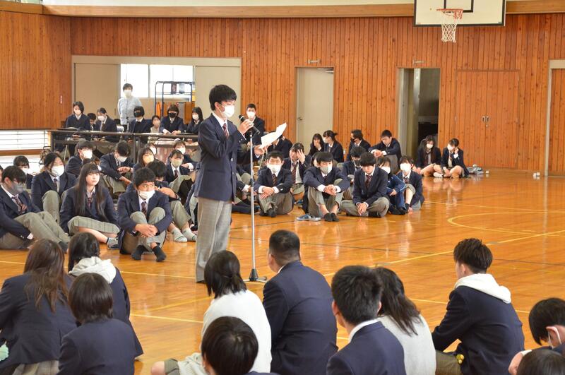 コロナの影響があり、全校生徒が体育館に集まっての予餞会は、2018年度以来4年ぶりでした。
