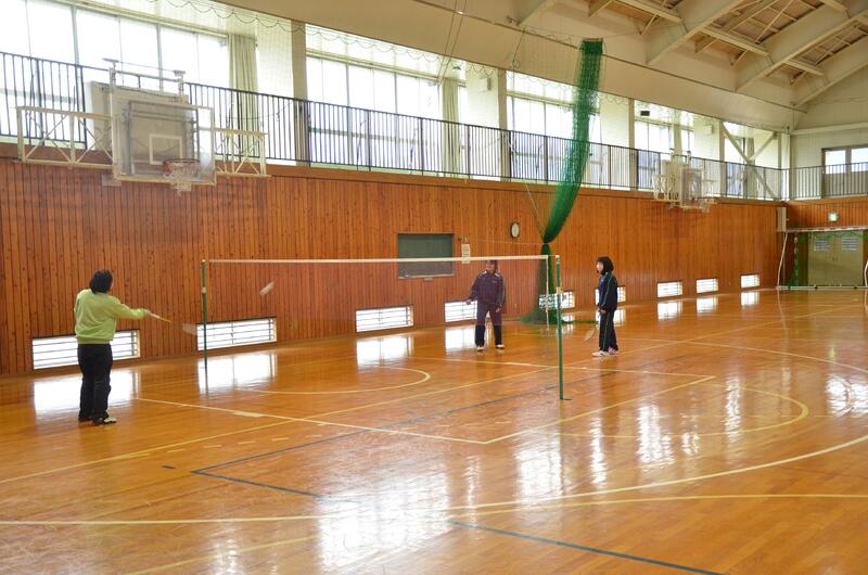 体育館で男女別のバレーボール、グラウンドでは男女混合のキックベースを行いました。