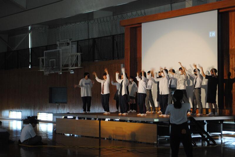 1日めは、体育館で各クラスの発表と文化系クラブの発表などがありました。