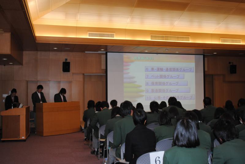 夏休みに実施したインターンシップについて、業種別にパワーポイントを使って発表しました。ご来賓からの方々からお褒めの言葉をたくさんいただきました。
