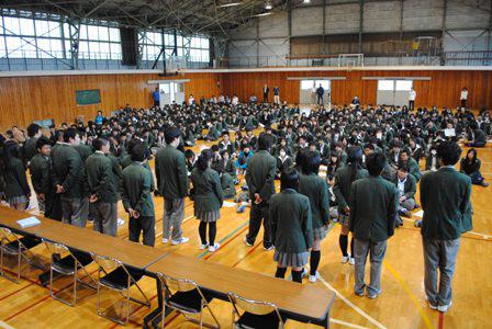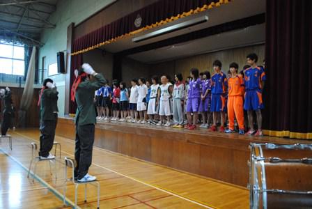 そして、今週末に迎える高校総体の地区大会に参加する選手のための壮行会(ハンドボール部・バスケットボール部・バドミントン部・卓球部・弓道部・剣道部)も行われました。前回の野球部・サッカー部に続き、皆、堂々と入場していたのが印象的でした。健闘を祈りたいと思います。