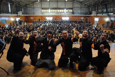 3月4日(火)、テレビなどにも出演している我武者羅應援團が来校し、坂高生を応援して下さいました。なんと衣装を着たまま坂高に来校。やる気満々、気合十分でした。9時過ぎからのリハーサルも迫力十分で、本番が心配されるほどでした。そして本番。ステージ上に上がった生徒も、我武者羅應援團の気合を十分注入されたことと思います。寒い中ご来校くださった皆様。ありがとうございました。