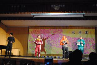 予餞会が行なわれました。先輩達を送るためもクラスの出し物も、毎年恒例のものや趣向を凝らした新しいものもあり、楽しい時間を過ごせました。そして、最後は3学年担任団によるステージ。みなさんお疲れ様でした。