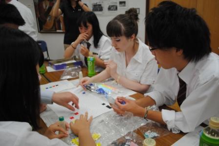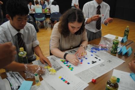 ポーランドから先生方を含め10名の方が来校し、ワルシャワの紹介をしていただき、本校生徒会役員の踊りの披露や、葛尾祭に向けた全校企画のモザイクアートの一部を共同で制作しました。
