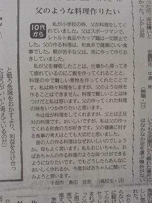 9月16日の信濃毎日新聞朝刊の「10代から」のコーナーに、またまた、本校3年生の作文がけいさいされました。