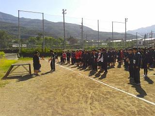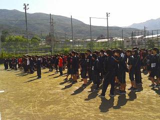 昨日の天気が嘘のように晴れ渡ったグラウンドで、秋季クラスマッチの開会式が行われました。優勝カップの返還、選手宣誓など、みんな晴れやかな表情で、気持ちよさそうでした。各クラス対抗で、ソフトボール、バレーボール、卓球に分かれて、今日と月曜日の二日間、熱戦が繰り広げられます。