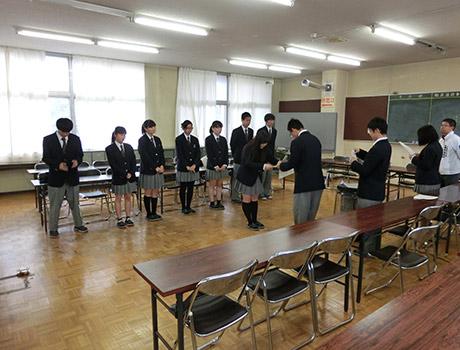 生徒の皆さんは、意識不明で倒れている人を発見したところから、心肺蘇生法、AEDの操作に至る一連の流れをつかむために、一人一人真剣に取り組んでいました。