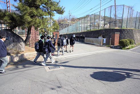 この取り組みは、春の交通安全週間に合わせて、あいさつの励行を生徒会の役員の皆さんから率先垂範するという趣旨で毎年行われています。