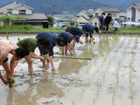 6月18日(金)、3年生の選択「生物」の授業で田植えの体験学習を行いました。