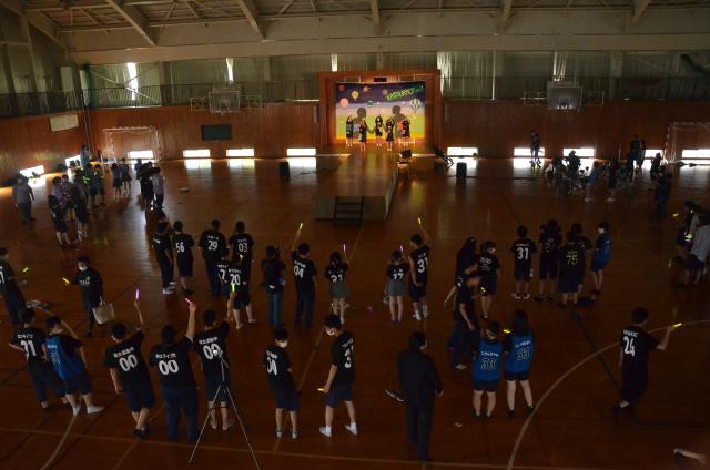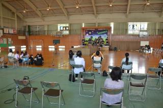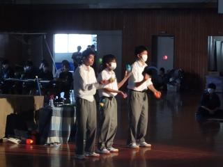 1日めは、体育館で各クラスの発表と文化系クラブの発表などがありました。