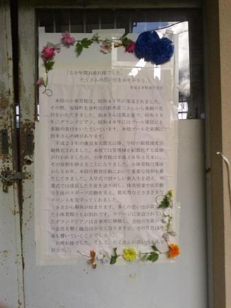 なお、敷地の一番奥にある「小体育館」は、今年度から耐震の関係で使用できません。9月以降の取壊しが決定しております。たくさんの思い出がつまった小体育館も50年の歴史の幕を閉じます。本校関係者の皆様、最後の姿をご覧いただければ幸いです。