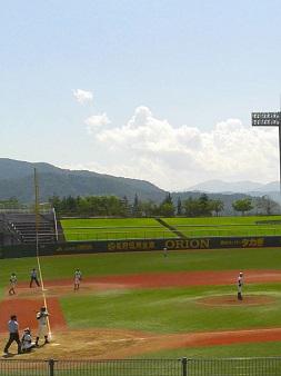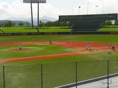 本日、北信越高校野球長野県予選の北信大会で、本校と北部、軽井沢の連合チームは、オリンピックスタジアムで、須坂創成高校と対戦し、延長10回5対4でサヨナラ勝ちしました。