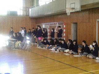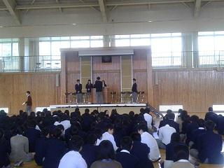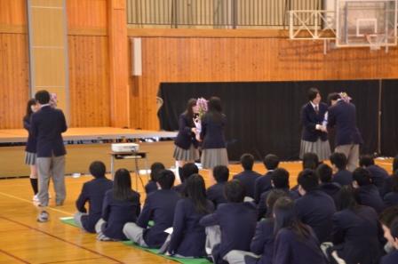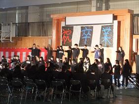 卒業式を明後日にひかえ、本日は3年生も登校し、生徒会による予餞会が開催されました。新執行部での初めての大きなイベントでしたが、心を込めてしっかりとできました。また、1,2年生の各クラスの出し物も工夫されていて素晴らしかったです。吹奏楽、軽音も相変わらずの素晴らしい演奏をありがとう。