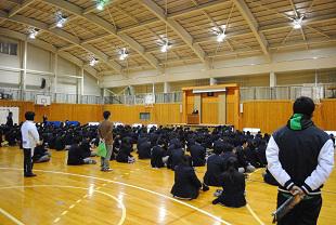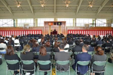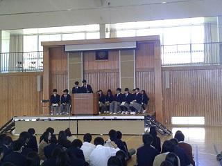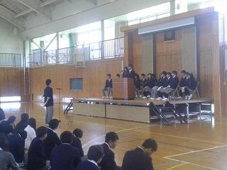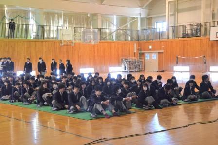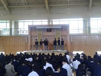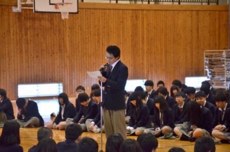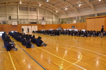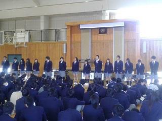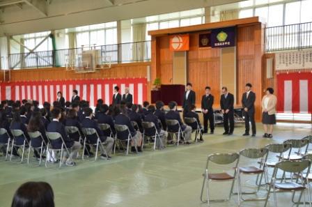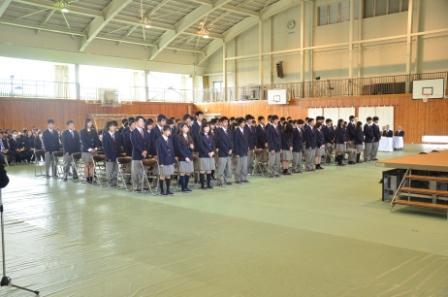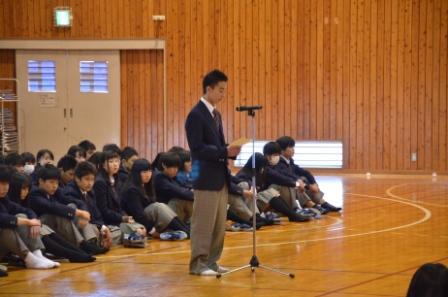 平成29年度の3学期終業式と離任式を行いました。1年間、生徒たちは元気で頑張りました。1年の本校での生活で、少し大人になって、成長した顔で登校しました。離任式では14名の教職員の異動があり、それぞれの先生方の想いを語ってくれました。