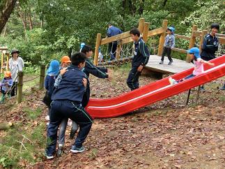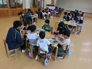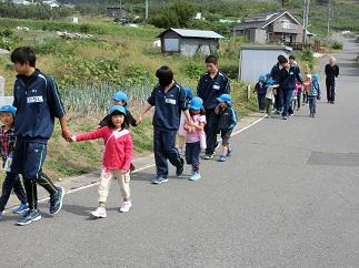 9月23日、生徒会の役員が、坂城保育園の運動会に、参加しました。ソーランを披露し、園児たちと一緒に踊りました。