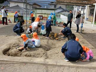 「坂城保育園、坂城小学校との交流」と、恒例の「ウォーターボーイズ」の様子です。