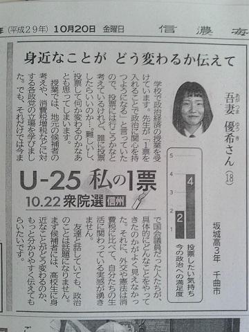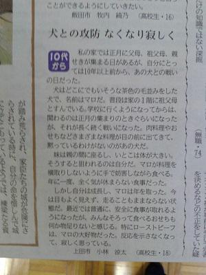 9月16日の信濃毎日新聞朝刊の「10代から」のコーナーに、またまた、本校3年生の作文がけいさいされました。
