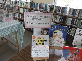 3年生の国語表現の授業で、本校の図書館の本を紹介するPOP(ポップ)を作成しました。この本を読んでみたくなるなーという気持ちにさせられるものばかりで、中には大変工夫したものもありました。現在、図書館の特設コーナーが作られています。生徒のみなさん、この機会に図書館へ足を運び、改めて本に親しむ時間をとってみませんか。