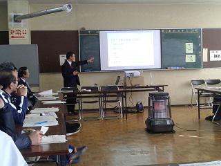 1月10日職員会の前に、ICT活用授業の研修会を開催しました。本校の数学科 宮下結一先生が「ICTをもっと身近なものに」と題して、授業で活用すると便利なものを、いくつか紹介してくれました。「指導書の活用」「図書の活用」「インターネットの活用」「エクセル・ワードの活用」「生徒作品の活用」「映像の活用」など、これなら簡単にできそうだというものもありました。各授業でできるところから活用していきましょう。