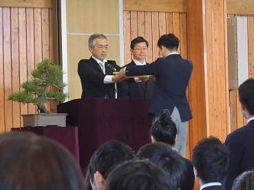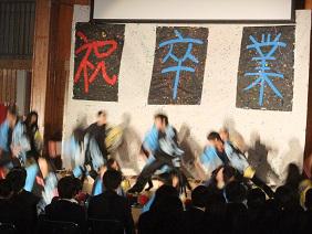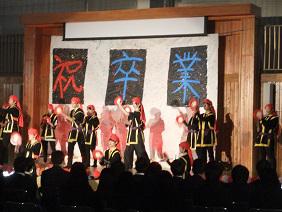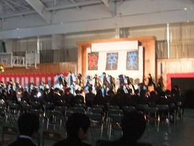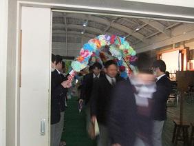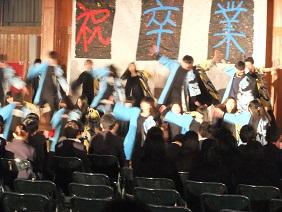 式の後、先生方全員で、担任の先生方の慰労をしている席へ、卒業生が乱入してきました。そして、でっかい声で「ありがとうございました。お世話になりました。」と言って去っていきました。坂高生は、スゲー。