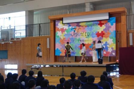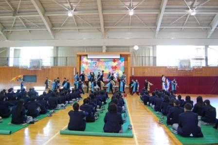 朝、新入生と在校生の対面式を行い、午後は生徒会による新入生歓迎会がありました。生徒会活動の説明や生徒会役員による寸劇、ソーラン。クラブ紹介など、盛りだくさんでした。心を込めた歓迎会でした。