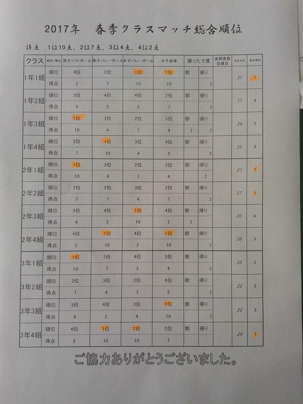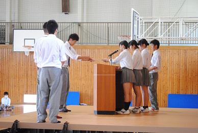 1学期の終業式を行いました。終業式に先立ち、生徒会による春季クラスマッチの表彰式が行われました。
