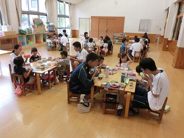 7月14日、本校生徒会が、坂城町村上保育園の夏祭りに参加しました。例年参加しており、夏祭りを盛り上げ、お手伝いして、園児と交流しています。