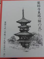 昭和26年に奈良の薬師寺の東塔の改修にあたり、長野県の生徒が修学旅行で多く訪れたり、法隆寺金堂の中心柱に木曽のヒノキが使われていたり、いくつかの縁から、本県が信濃教育会の呼び掛けにより、修補瓦の募金の先駆けとなった。本校も当時のおそらく生徒たちが募金を募り、修補瓦を奉納したものであろう。その頃の生徒は今は82歳から85歳くらいかと思う。この度の東塔の全面改修にあたり、当時の修補瓦を取り外し、再利用できないものについて、多くの方々のご努力により、瓦に書かれた学校へ里帰りすることとなった。