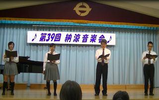 7月8日に本校合唱部が、坂城町の第39回納涼音楽会に参加しました。昨年から少人数ではありますが、参加しているもので、今年は部員が1年生2名のみでの参加でした。そこで、顧問の関崎秀一先生と依田翔先生も一緒にステージにあがりました。