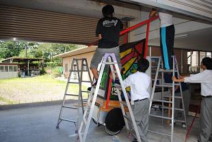 8月5日に行われる地元のお祭り「坂城どんどん」に本校生徒会は、毎年参加しています。今年も、山車の製作が始まりました。