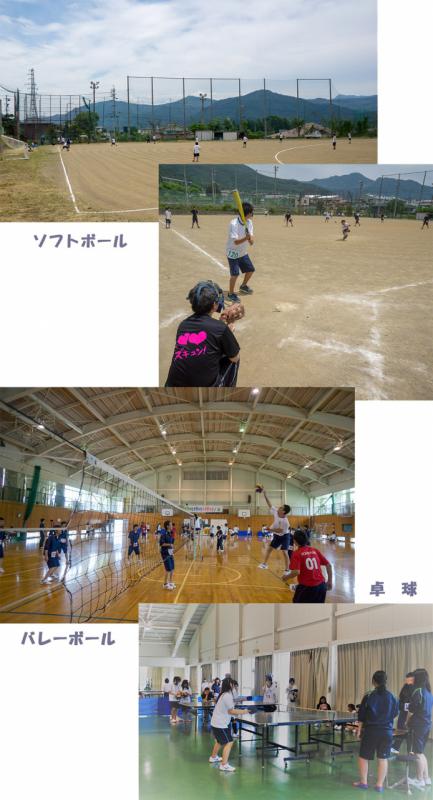 坂城高校では、春と秋に年2回クラスマッチが行われ、男子はソフトボールとバレーボール、女子はバレーボールと卓球で競われます。特に、春は学年対抗戦になっているので、学年ごと順位が決まります。各クラス、クラスの旗のもと団結して、各種目に打ち込んでいました。