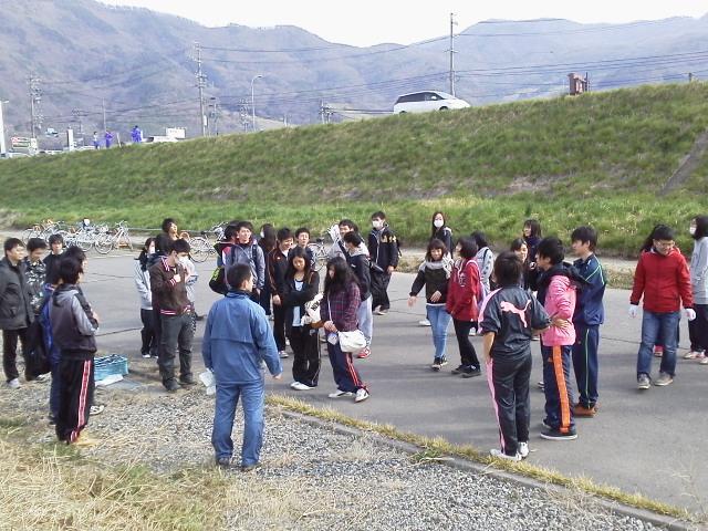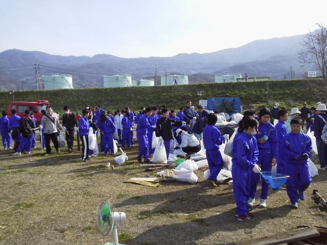 早朝から生徒会やJRC部を中心に40人以上の坂高生が、坂城町の千曲川クリーンキャンペーンに参加しました。7時からの開会式では、山村町長さん、ライオンズクラブの臼井さん(本校同窓会長)のあいさつがありました。一般の方、中学生らと一緒に約1時間、トラック一杯のゴミが収集されました。やぶの中に入ってゴミを拾い、泥だらけになっている生徒もいました。みなさんお疲れ様でした。